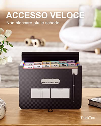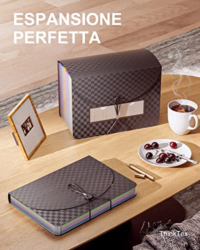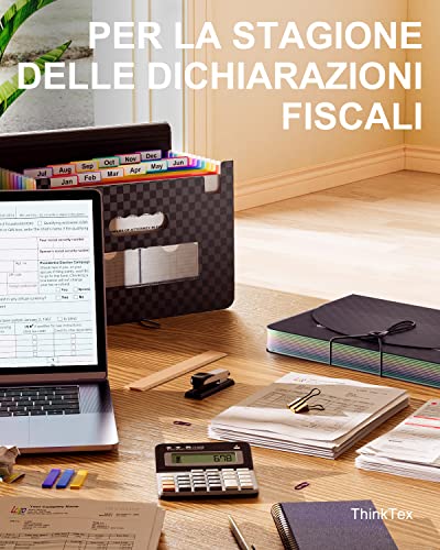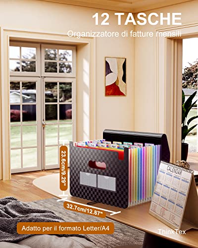 ThinkTex Organizzatore di File 12 tasche, Cartella di File Espandibile Copertura Espandibile, Scatola di Archiviazione Portatile, Cartelle a Fisarmonica da Tavolo