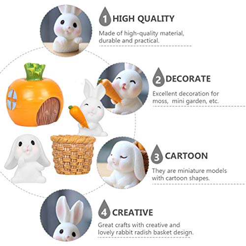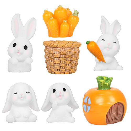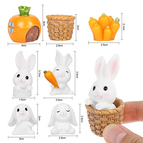 Zaloife Miniature Coniglietto Figurine Ornamenti, 7 Pezzi Decorazione di Pasqua Figurina, Coniglio Carote Casa Piante Orticole Accessori, per Giardino Micro Ornamento di Paesaggio
