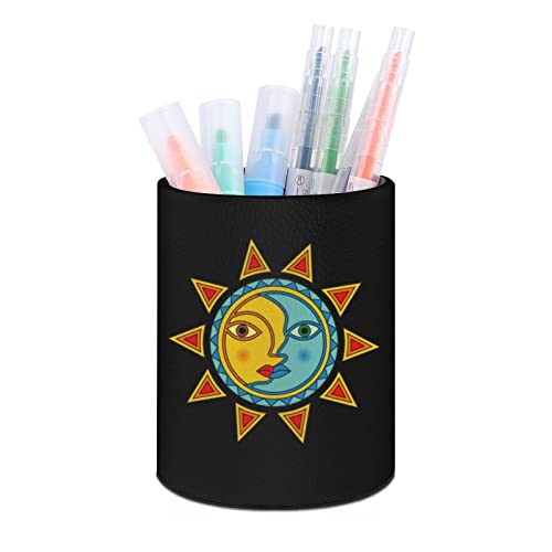Sun Moon Pen Holder PU Leather Pencil Holder Makeup Brush Box Storage Organizer Cup per scrivania Home Office