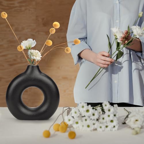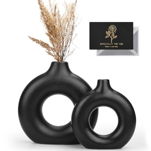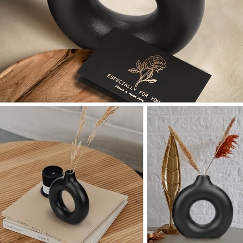 SAMISO Set di 2 Vaso di Ceramica,Vase Decoratif Vaso Ceramica Rotondo da Fiori Decorativo in Stile Moderno per La Decorazione del Soggiorno Camera da Letto e Dell’ufficio(Nero )