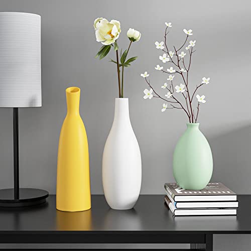 Vasi Ceramica Set Di 3 Altezza 22+20+12cm, Vasi di Fiori Decorazione moderna della casa, Vaso di Ceramica per Fiori tavolo libreria camino soggiorno camera da letto ufficio matrimonio regalo