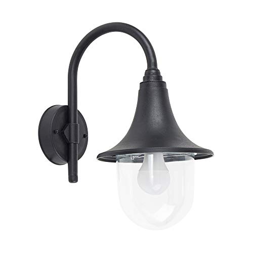 Outdoor stile tradizionale pescatori lampada da parete in una bella finitura nera. Una lampadina non è fornita con questo articolo. Realizzato in resina resistente alle intemperie con tonalità chiara. Perfetto per illuminare giardini, cortili, vialetti, portici, verande o uso interno. Grado di protezione IP44 – completamente certificato per installazione esterna.