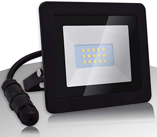 Lumare LED Spotlight 10W | Extra Flat Floodlight IP65 | Outdoor and Indoor | incl. IP65 Power Connector | Outdoor Light 3000K Warm White | Floodlight Waterproof | Garden Lamp