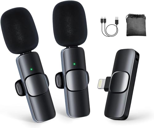 Moman Microfono Lavalier Wireless, CP1X(A) 2,4 GHz 2TX Mic Senza Fili Doppio Microphone con Interfaccia Lightning per YouTube Tiktok Vlog, Microphone-Wireless-Lavalier-iPad-iPhone 14/13/12/11