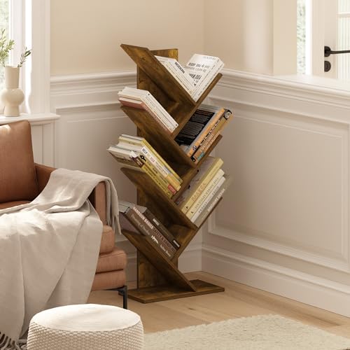 Furinno Tree Bookshelf Libreria ad albero da terra a 7 livelli, Pino Ambrato