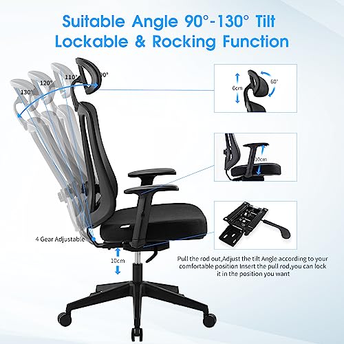 【Design ergonomico】 la sedia ergonomica da ufficio imita la forma della colonna vertebrale umana, sostiene completamente la schiena. E adattare 4 impostazioni di regolazione ergonomiche ti aiuterà a trovare la posizione seduta più comoda quando sei seduto per lunghi periodi. Adatto per ufficio, casa, sala riunioni e postazione di lavoro.
