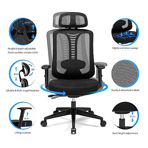 【Maglia traspirante e seduta comoda】 la comoda sedia da ufficio utilizza un design in rete traspirante per evitare l’accumulo di sudore e calore. Il cuscino in spugna ad alta densità è morbido e traspirante che ti mantiene comodo per una giornata di lavoro completa.