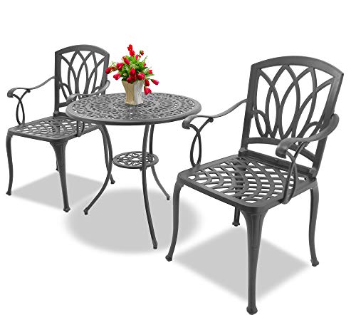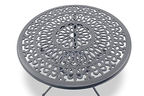 Homeology POSITANO – Tavolo da giardino e patio, 2 grandi sedie con braccioli in alluminio pressofuso, colore: grafite