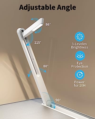 ????[La lampada a LED ha tre impostazioni di luminosità che possono soddisfare le vostre esigenze di lavoro, lettura, scrittura, apprendimento, intrattenimento e altro, la regolazione dell’angolo su quattro assi può proiettare la luce direttamente dove avete bisogno della lampada da tavolo pieghevole a LED per 10 ore con una singola carica.