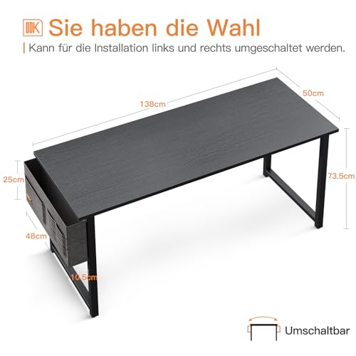 ODK Scrivania per Computer, Scrivania da Ufficio, Scrivania da Lavoro con Borsa Portaoggetti e Gancio, Tavolo Gaming per Cuffie per Studio, Camera da Letto (138x50x73.5cm, Nero)