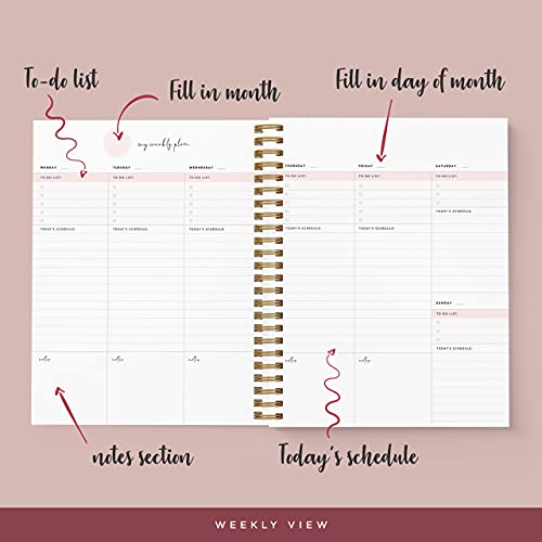Bright Day Calendars Bright Day, agenda settimanale mensile non datata astratta rosa di Bright Day, diario di produttività per appuntamenti di 12 mesi, 21 x 19 cm