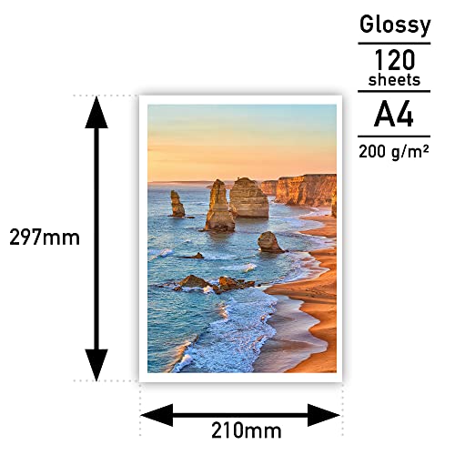 Dimensioni foglio: A4 210mm x 297mm, grammatura 200 gsm, 120 fogli/confezione