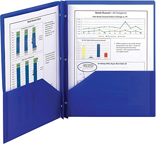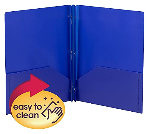 Smead 87726 Poly Two-Pocket Folder With Fasteners, 8-1/2 x 11, Blue, 25/Box, Everything you need for all types of presentations, proposals and projects. Metal fasteners hold up to 50 sheets each. Metal fasteners hold up to 80 three-hole punched sheets for additional storage. Durable tear-proof and water-resistant material stands up to daily use. Archival quality aids in preserving important documents.