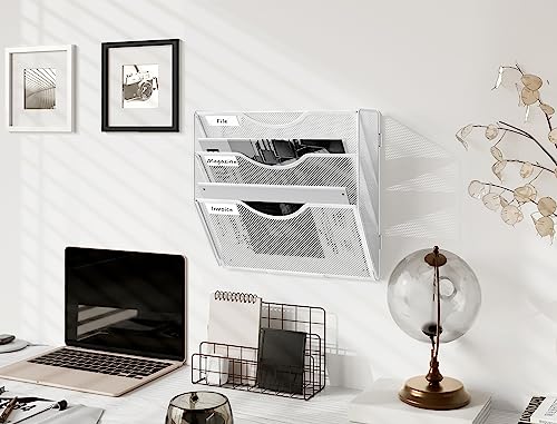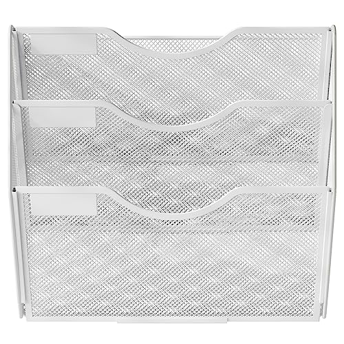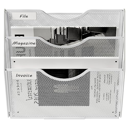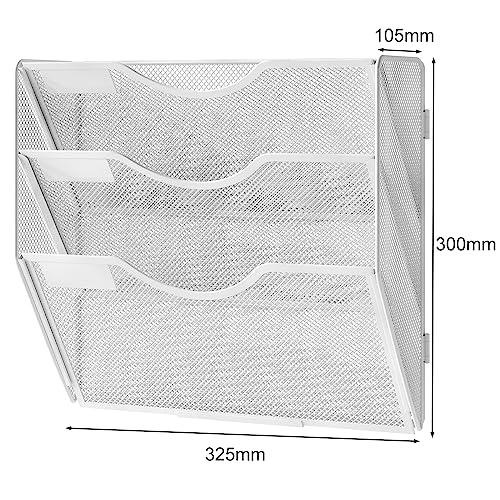 EasyPAG 3 ripiani A4 Mesh in Tray Assemblare Wall Pocket File Holder Mail Organizer Magazine Storage Rack, Bianco